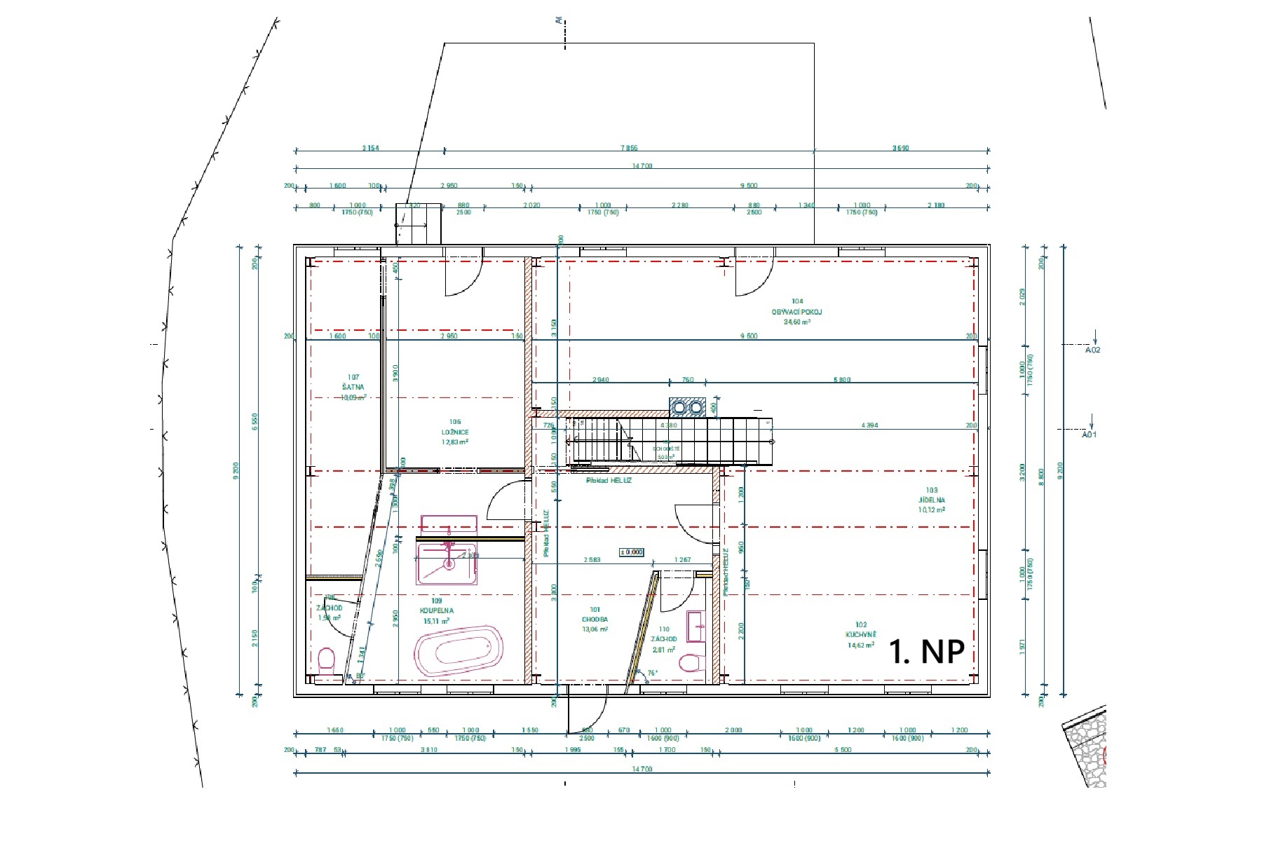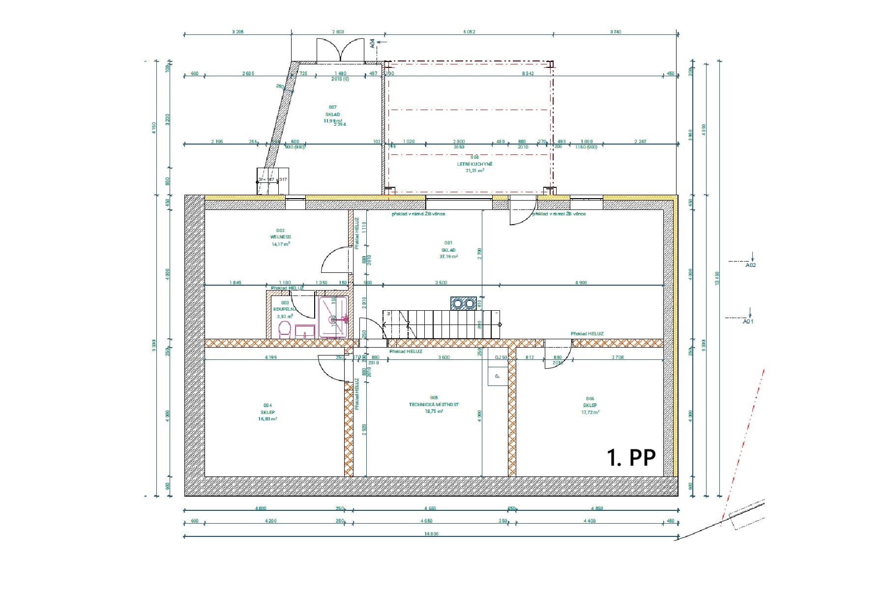 Dům je navržen tak, aby přirozeně zapadl do historické zástavby Štramberka a zároveň nabídl komfort moderního bydlení. Zastavěná plocha domu činí přibližně 138 m². Objekt je částečně zapuštěný do svahu, díky čemuž vzniklo plnohodnotné suterénní podlaží s wellness zázemím a samostatnou letní kuchyní, doplněné o technickou místnost, sklady a další provozní prostory. Toto podlaží rozšiřuje využití domu a umožňuje oddělit klidovou část od hlavního obytného podlaží.
